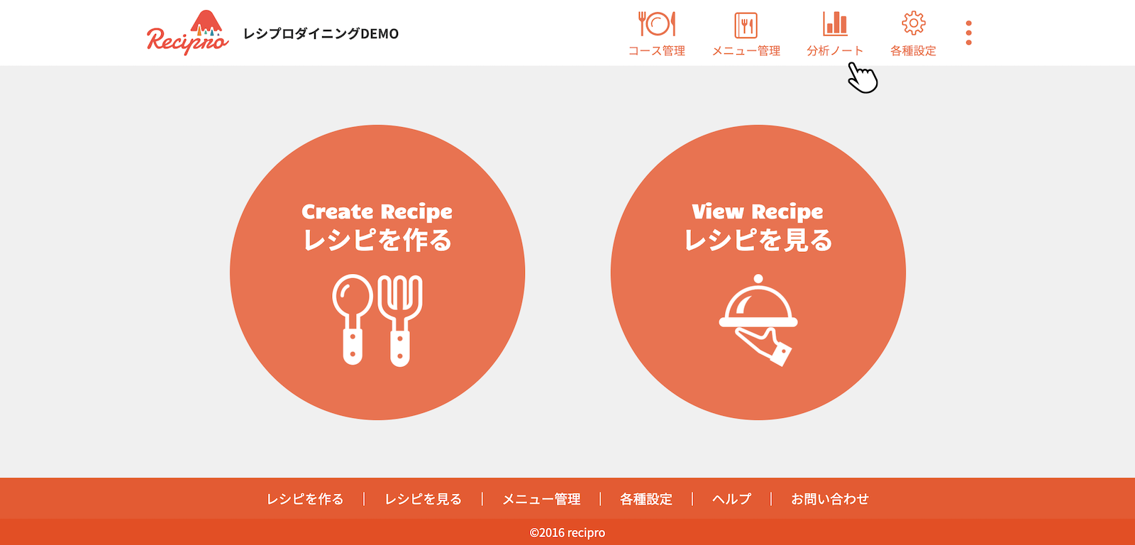 トップページで[分析ノート]をクリック(タップ)