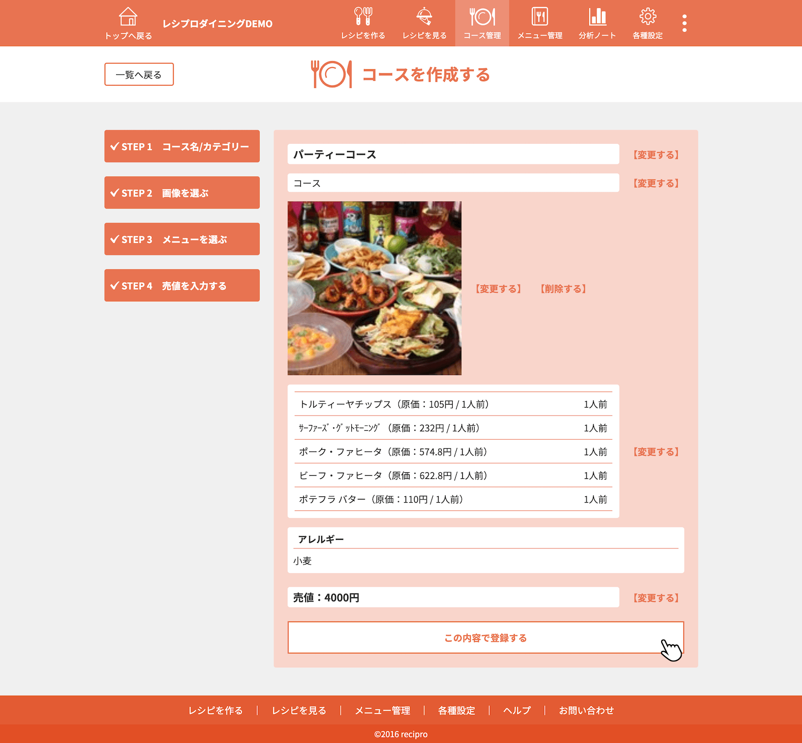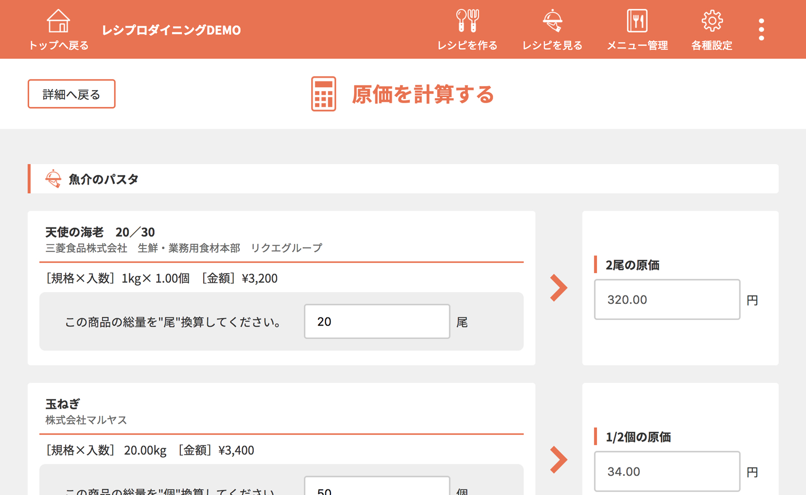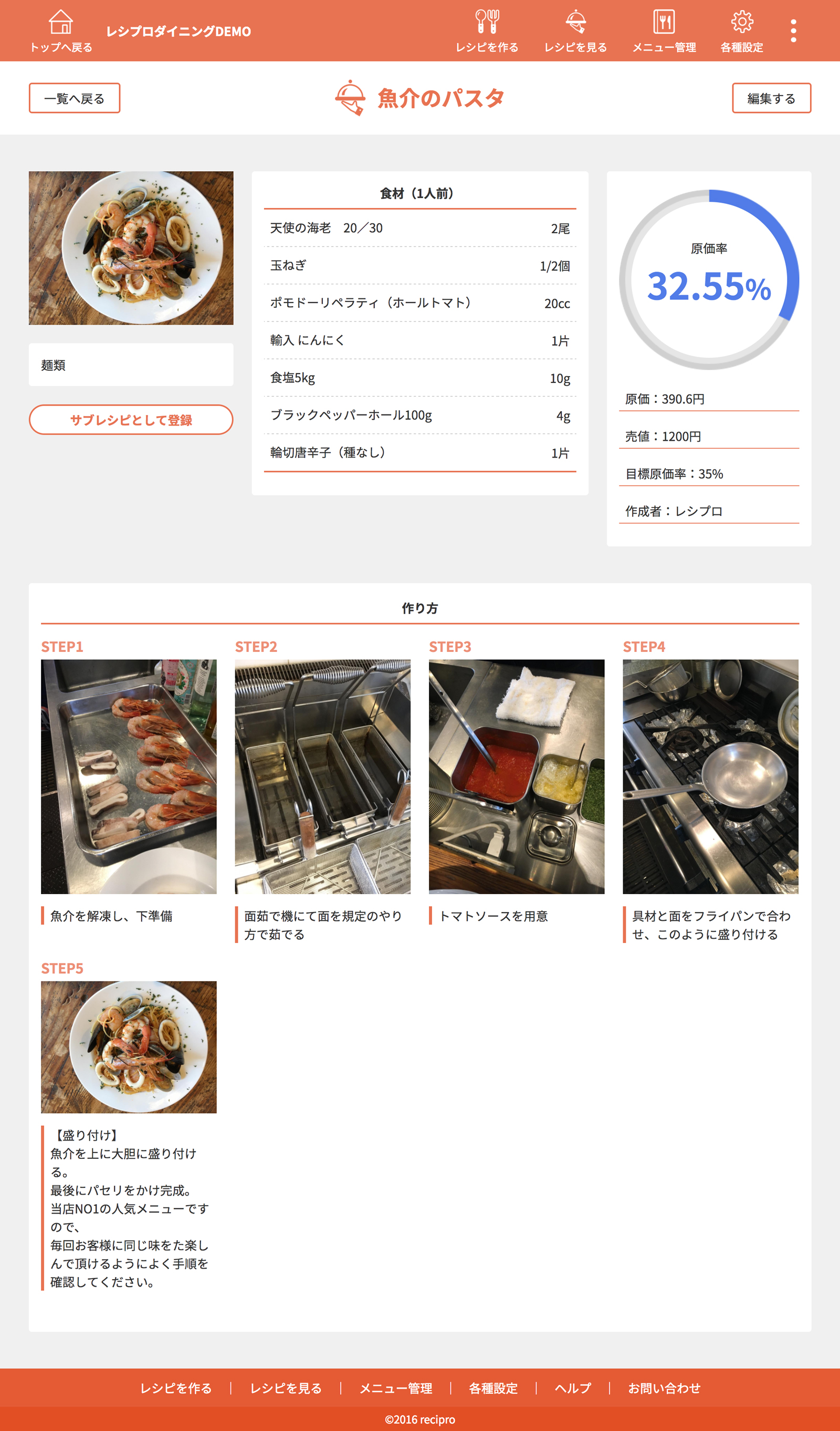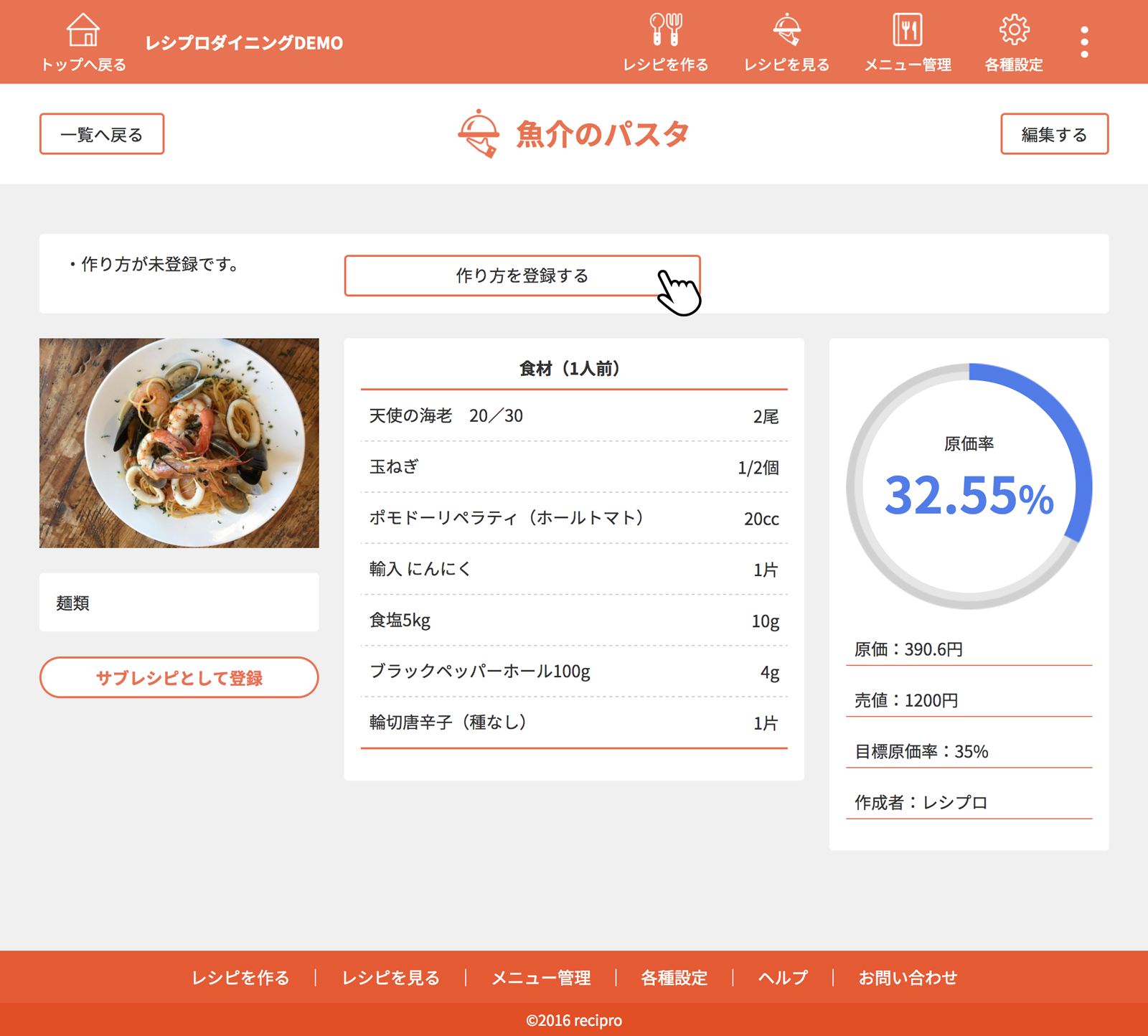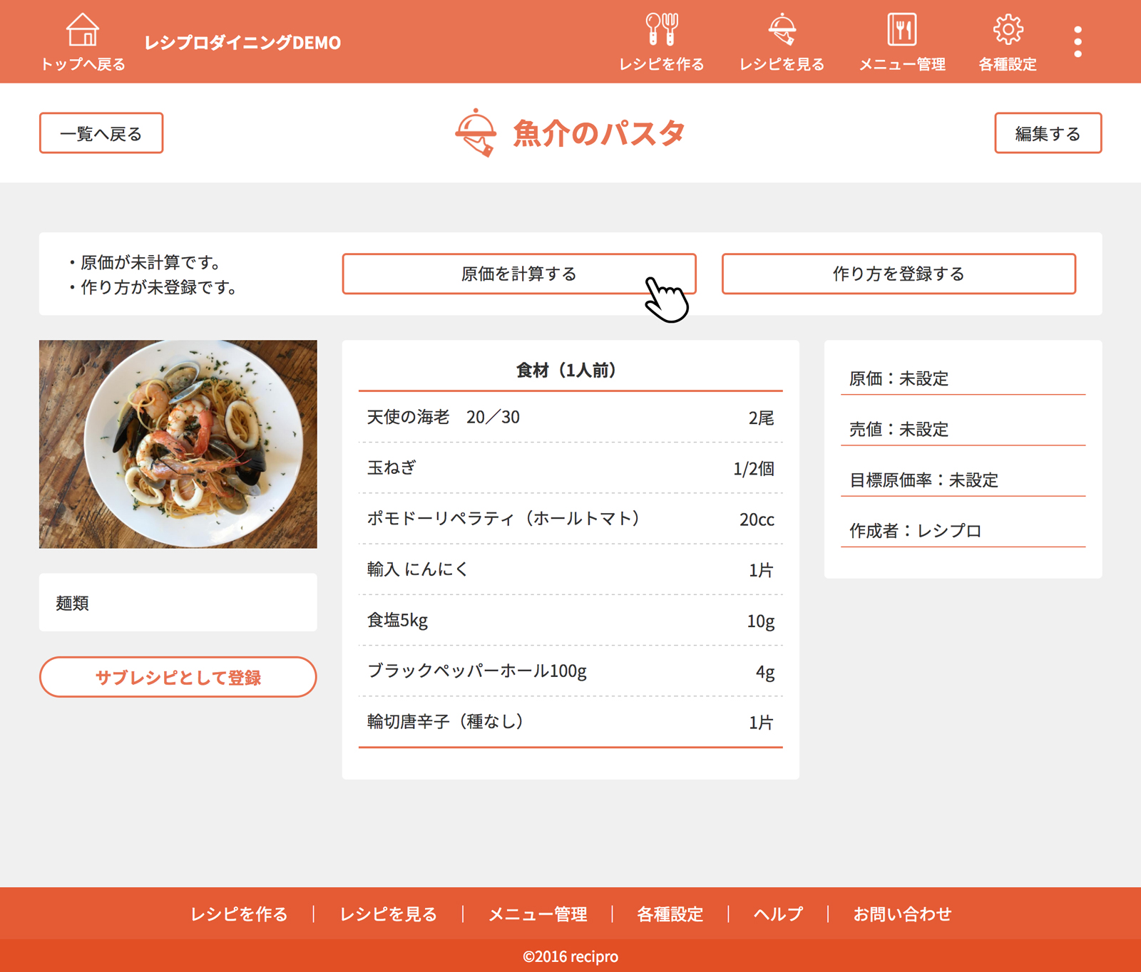・・・原価、作り方登録済みのレシピです
