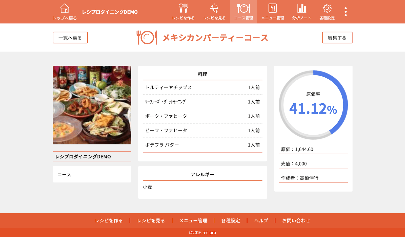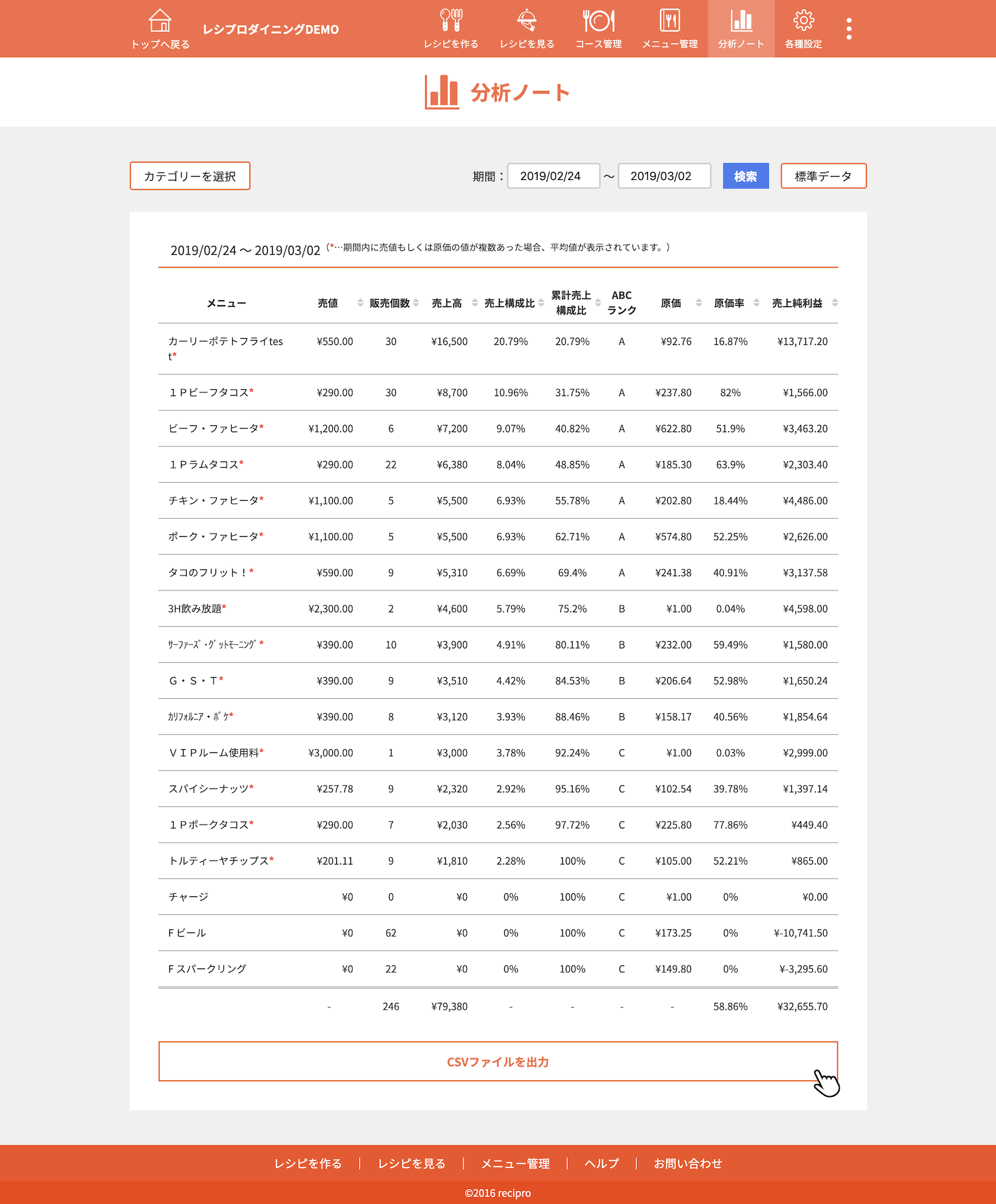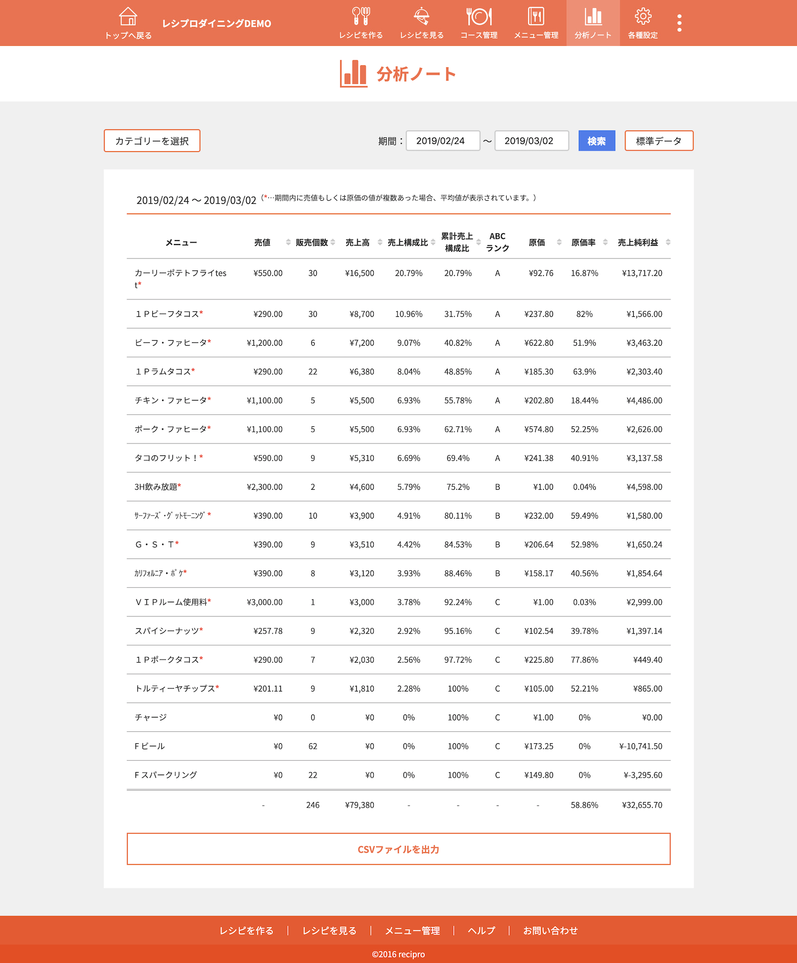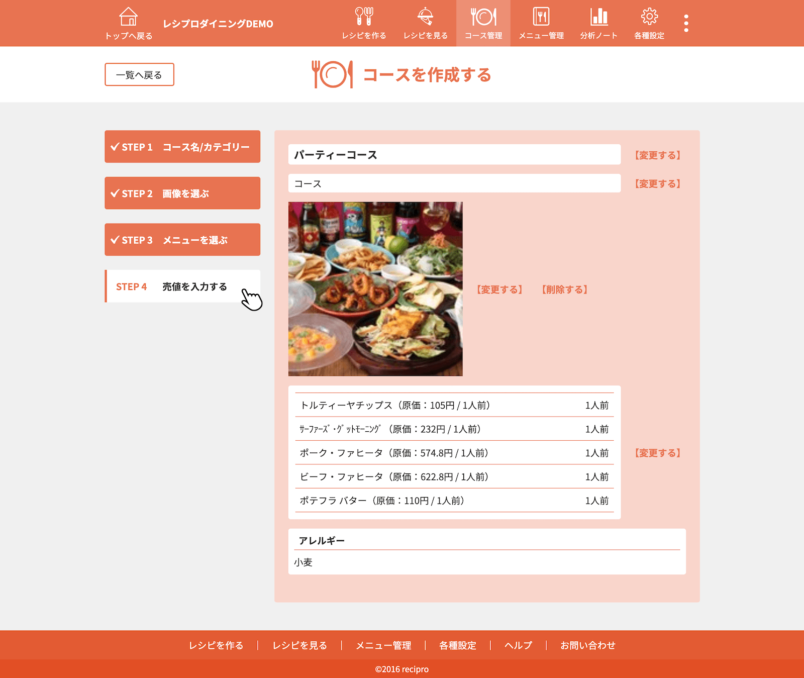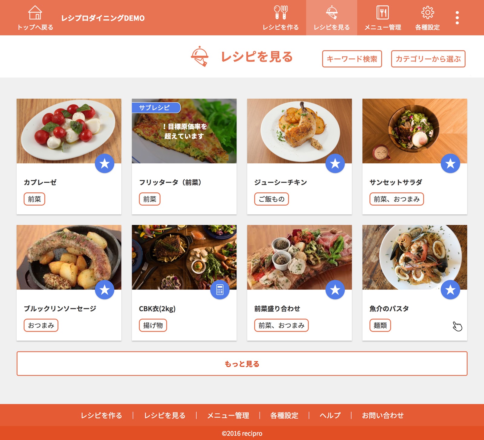 ・・・原価、作り方登録済みのレシピです