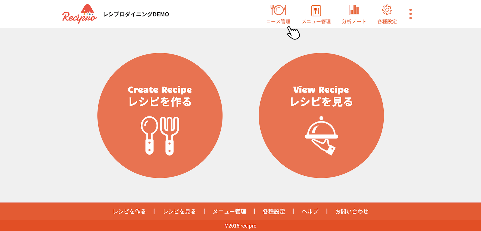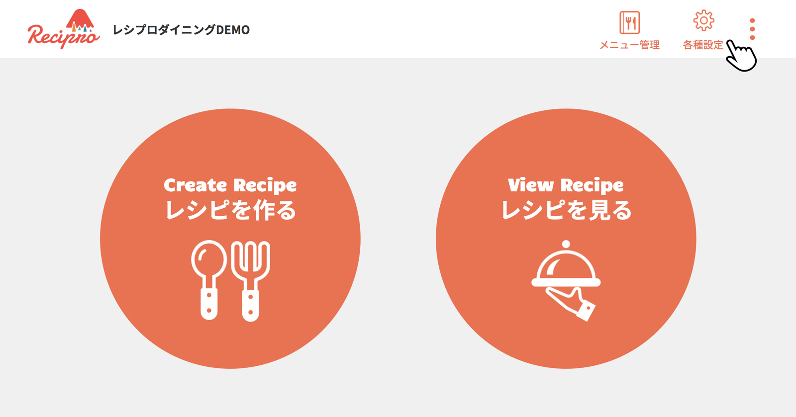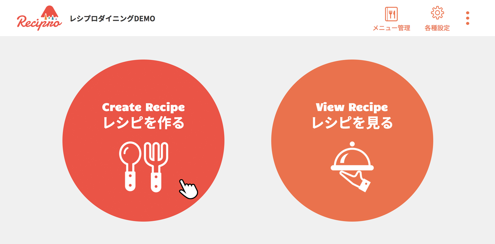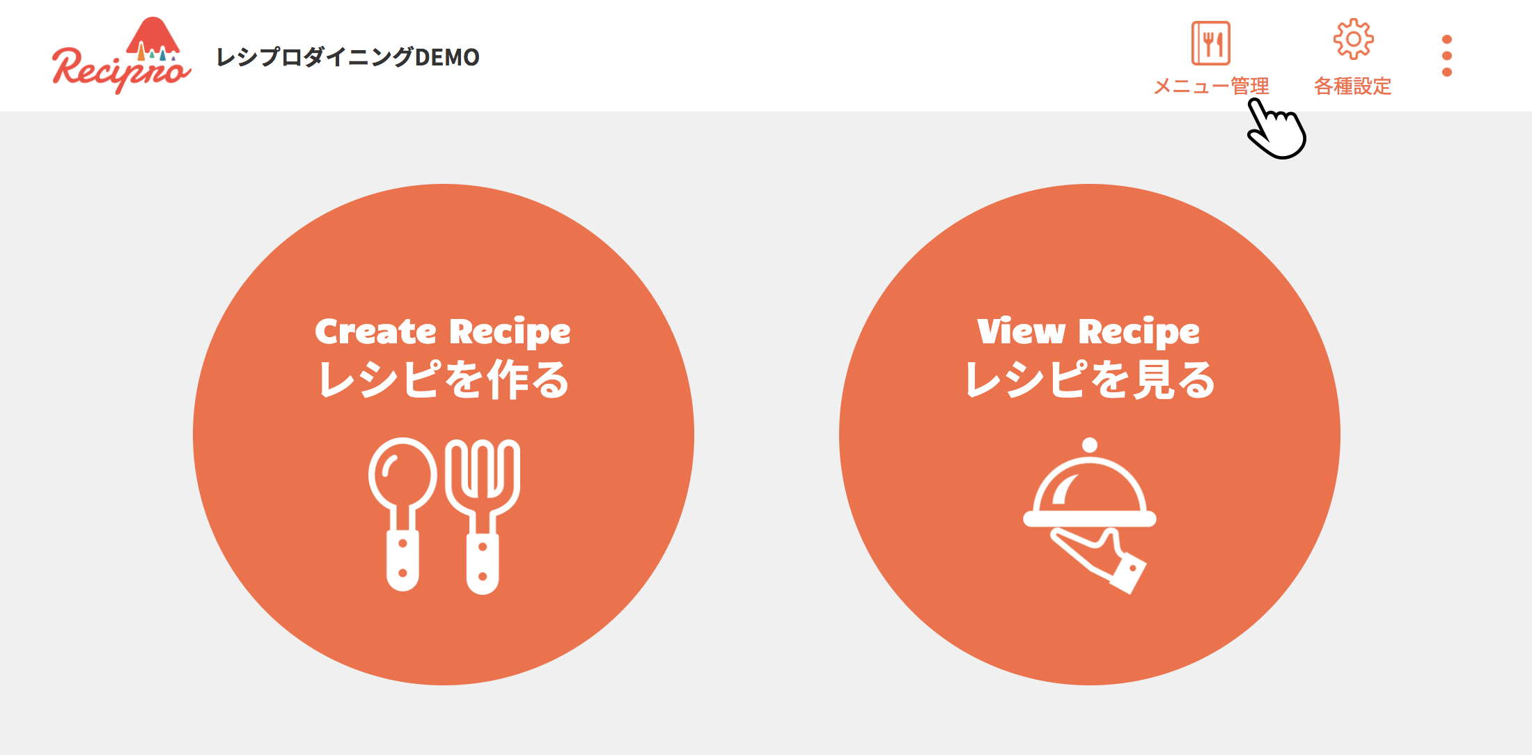 トップページで[メニュー管理]をクリック(タップ)