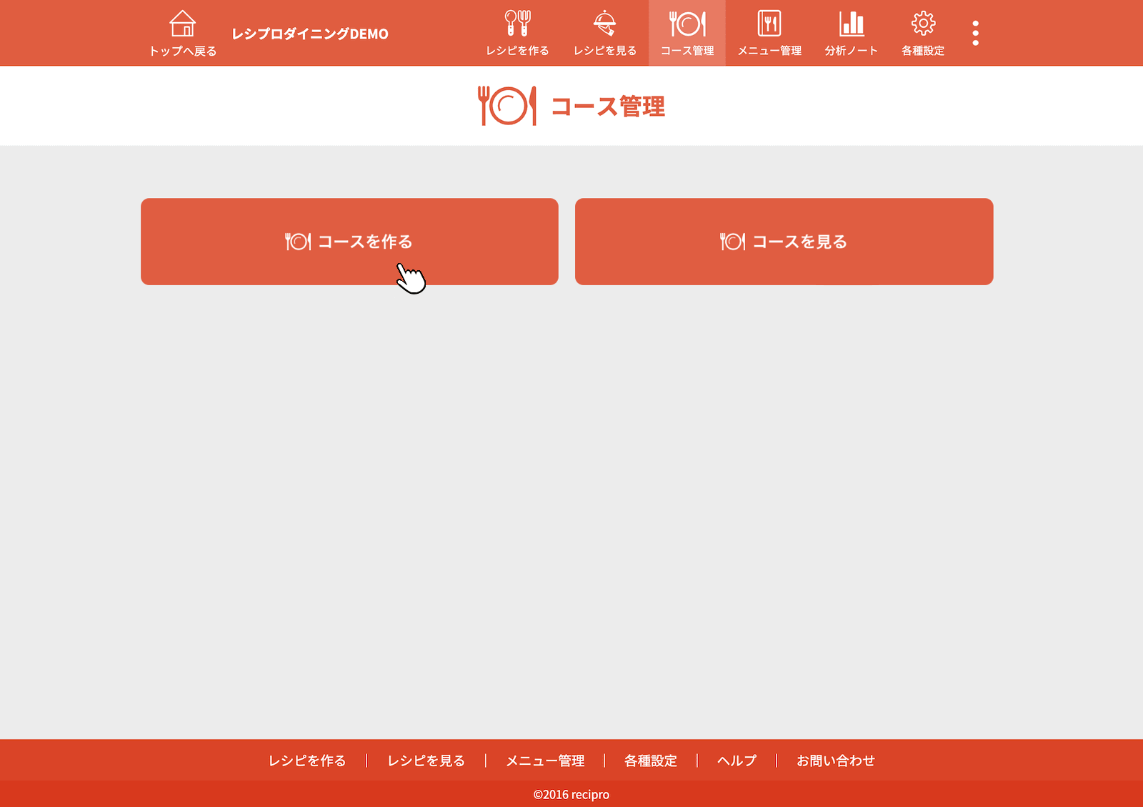 トップページで[コース管理]をクリック(タップ)