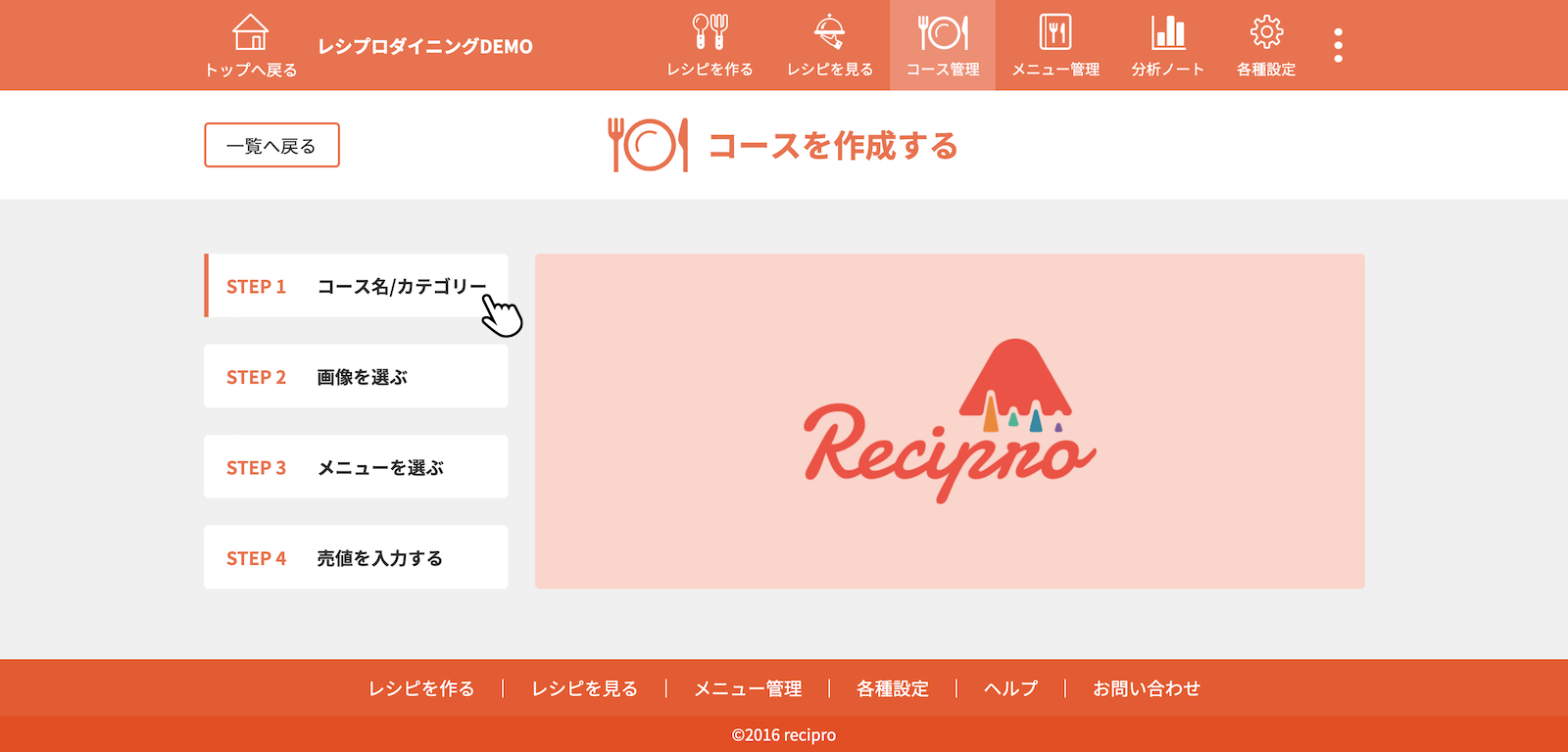 [STEP1 コース名/カテゴリー]をクリック(タップ)