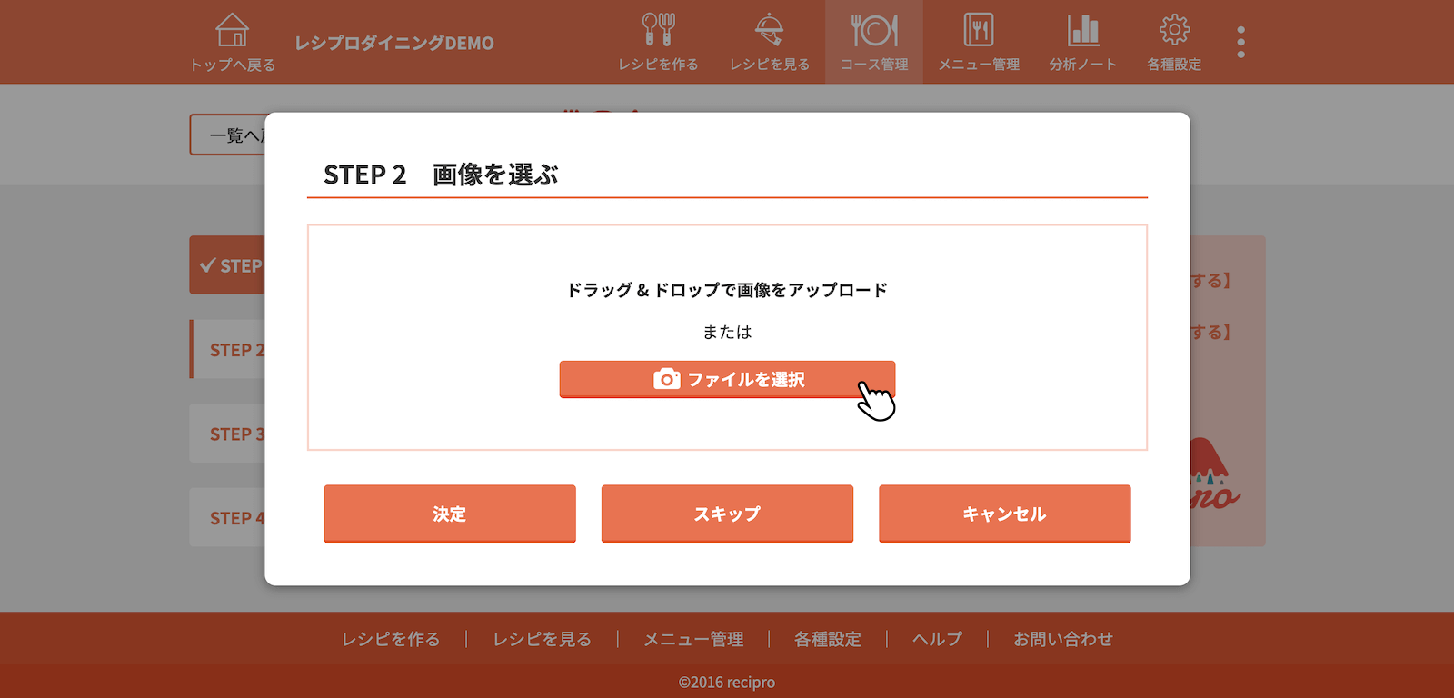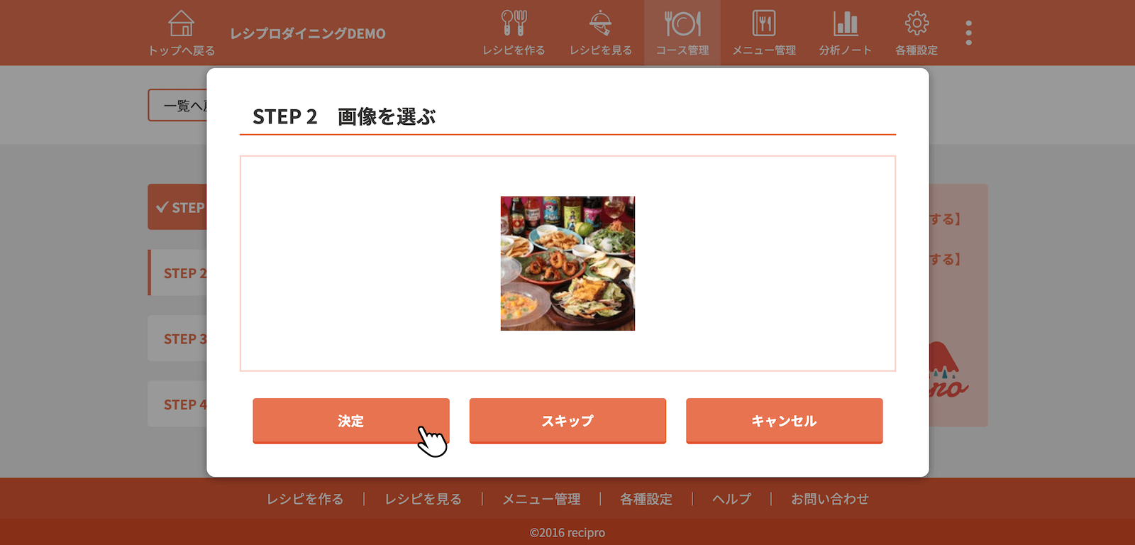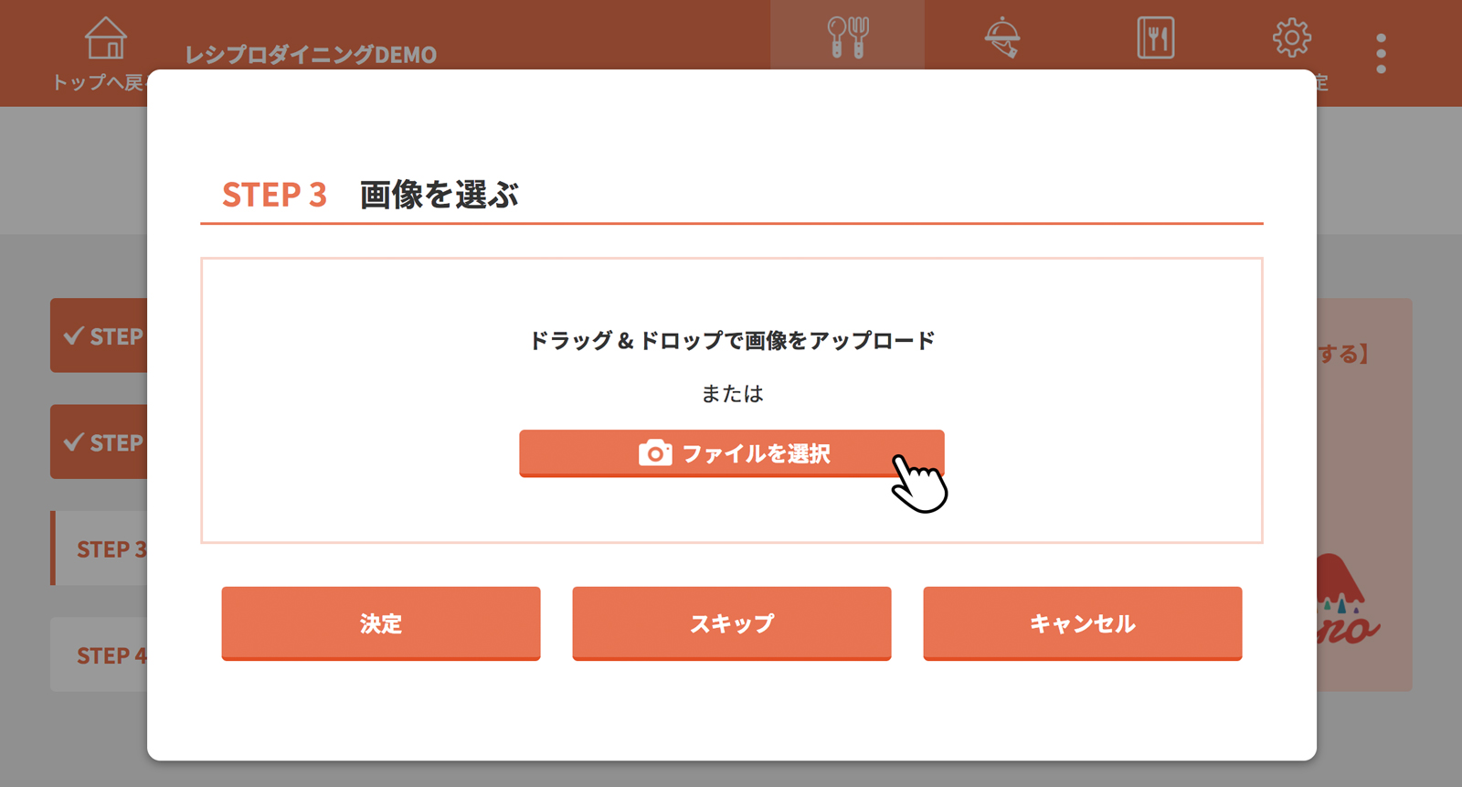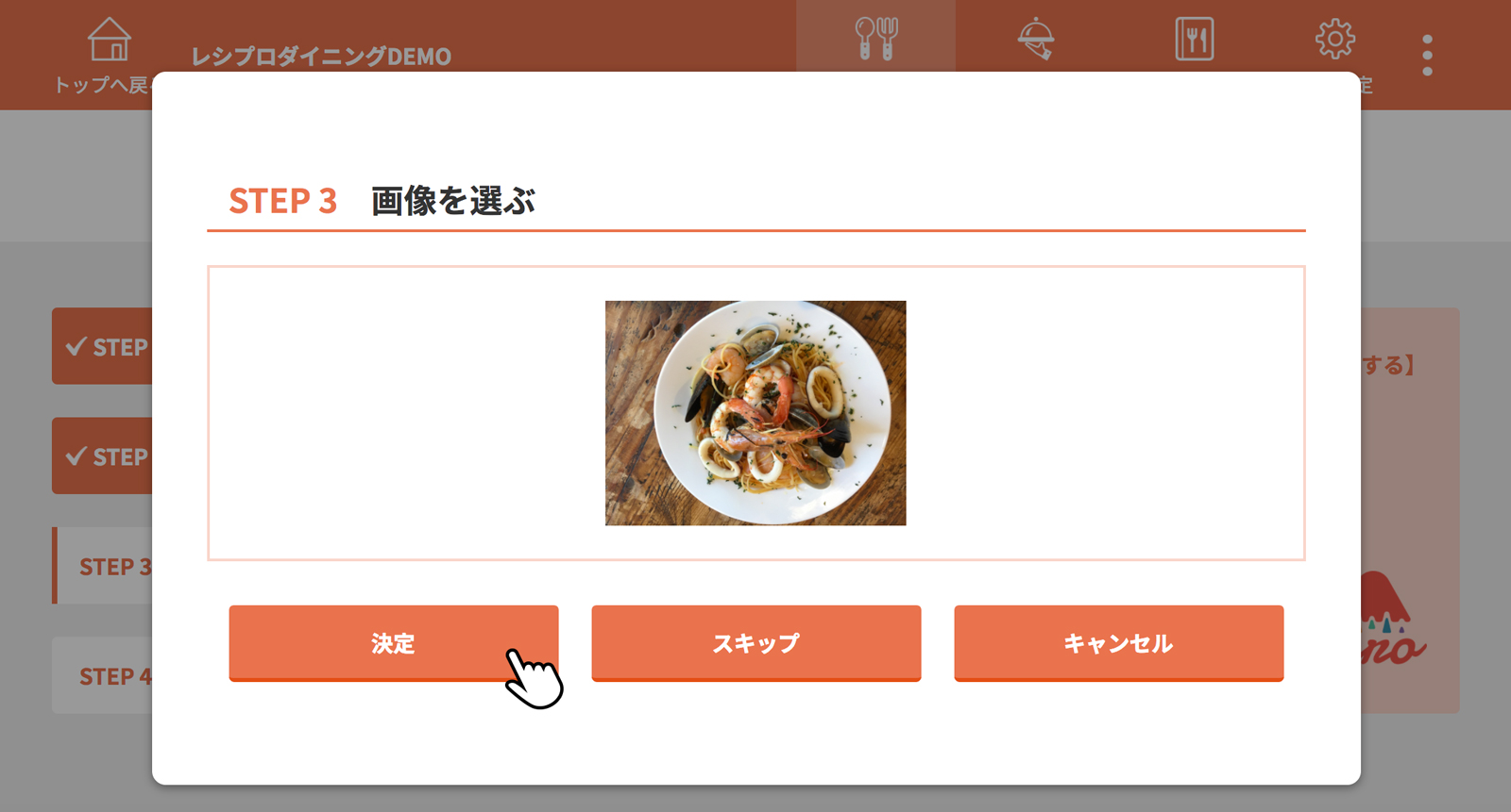 画像を選択、手順を入力後、[決定]をクリック(タップ)