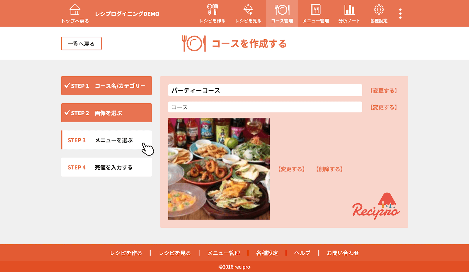 [STEP3 メニューを選ぶ]をクリック(タップ)