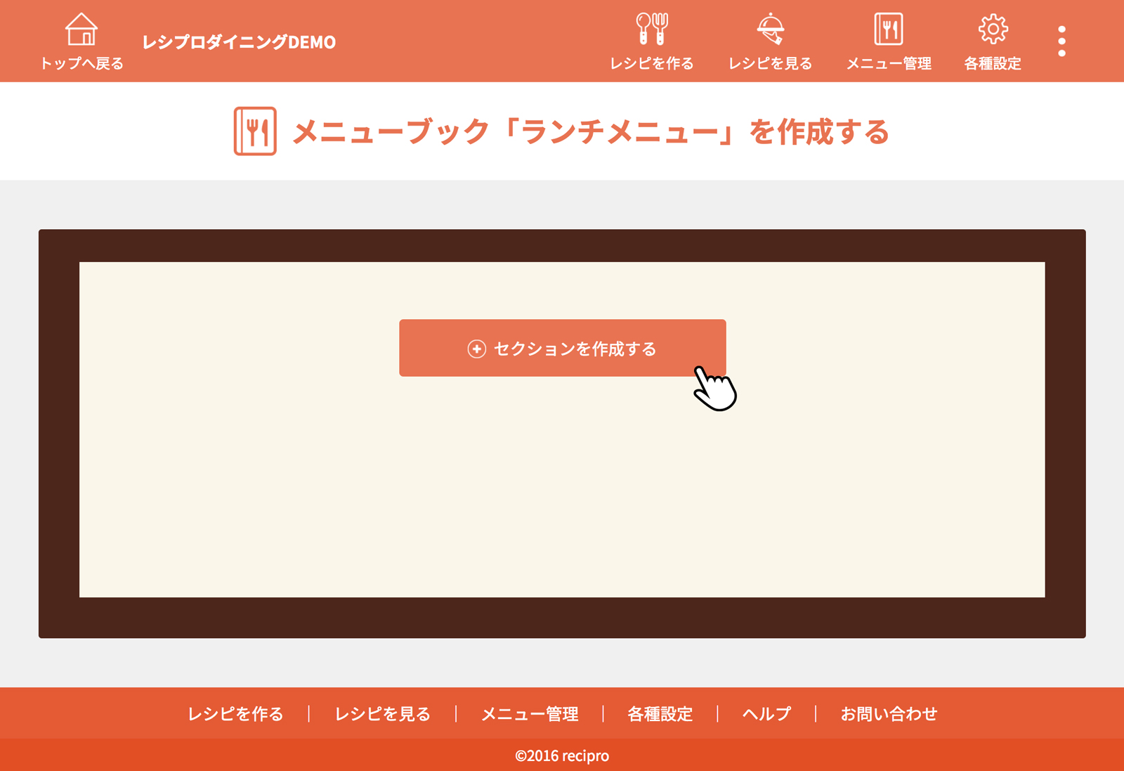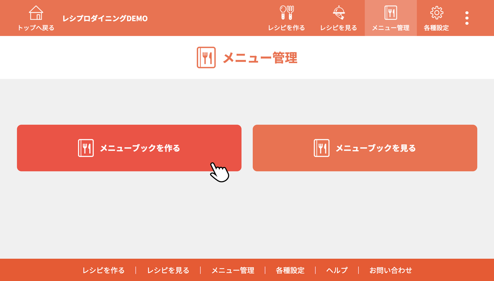 [メニューブックを作る]をクリック(タップ)