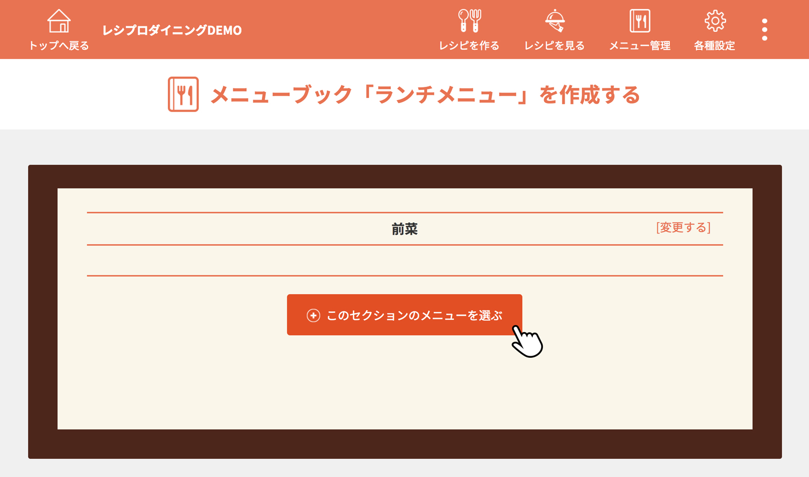 [このセクションのメニュー選ぶ]をクリック(タップ)