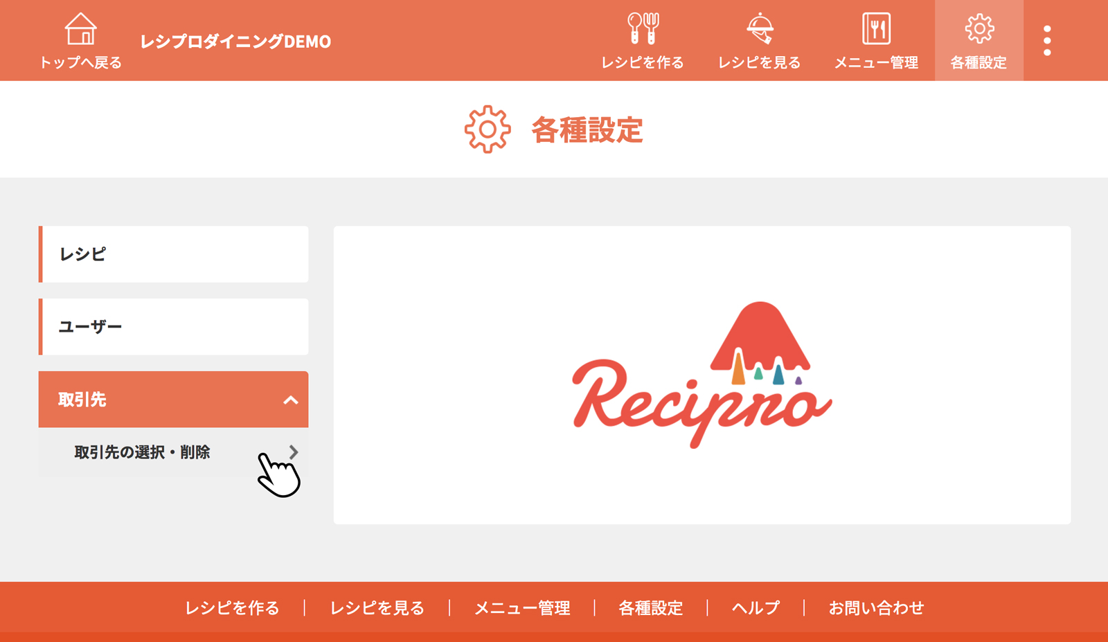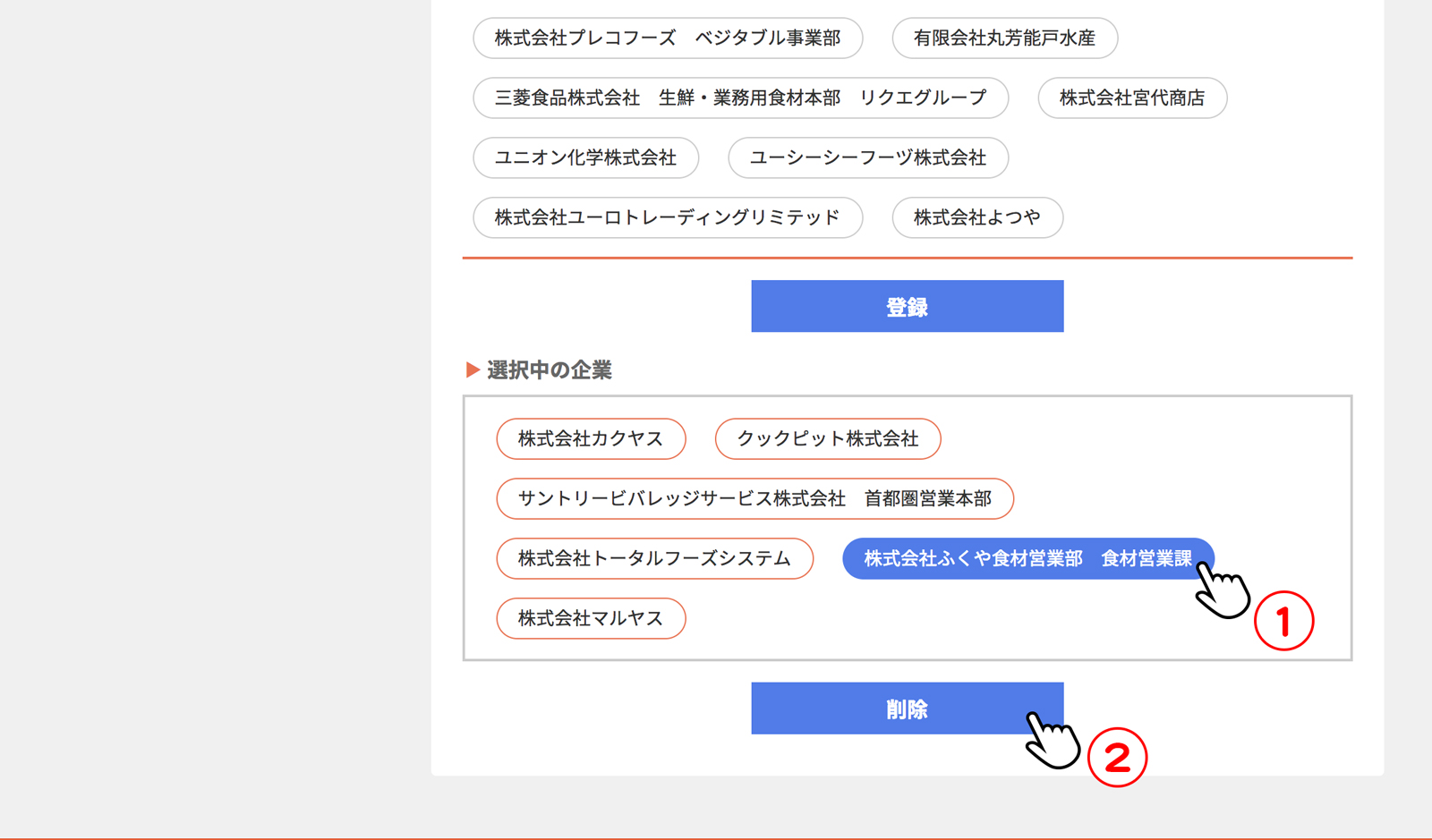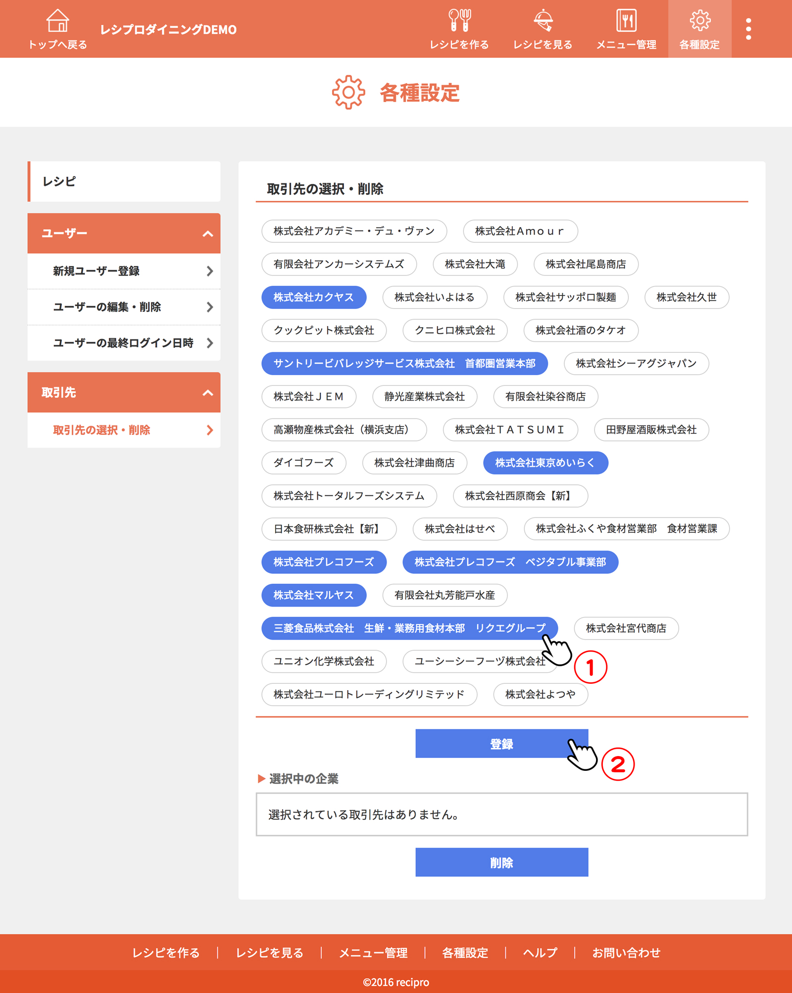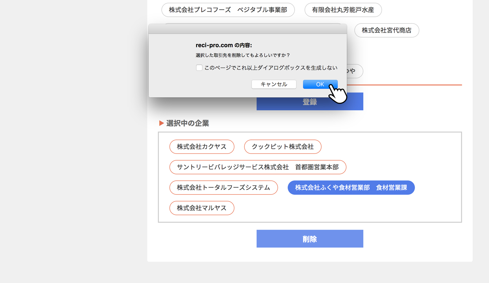 [取引先の選択・削除]をクリック(タップ)