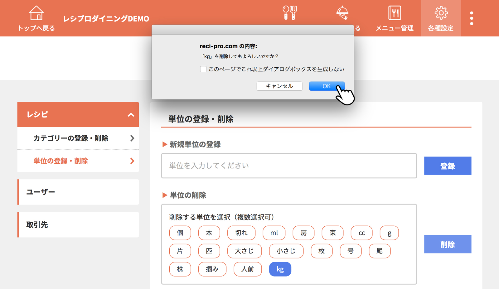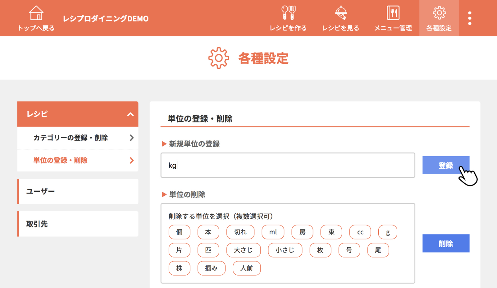単位を入力し、[登録]をクリック(タップ)