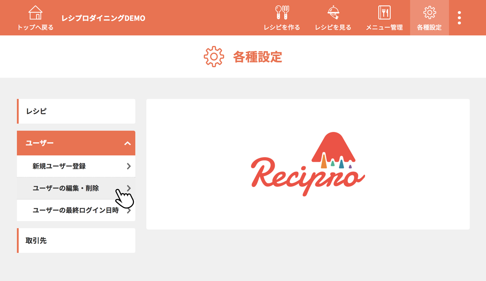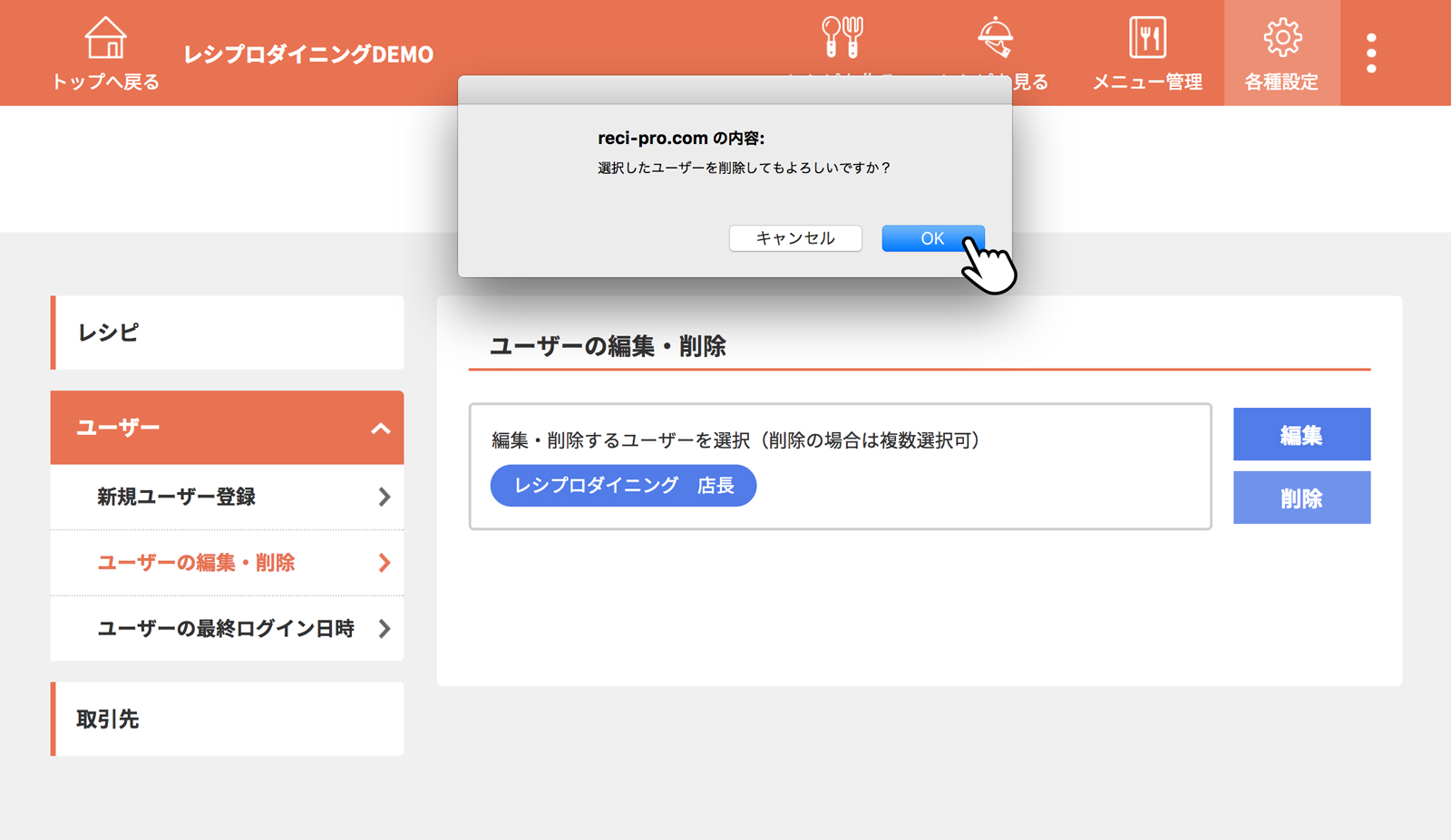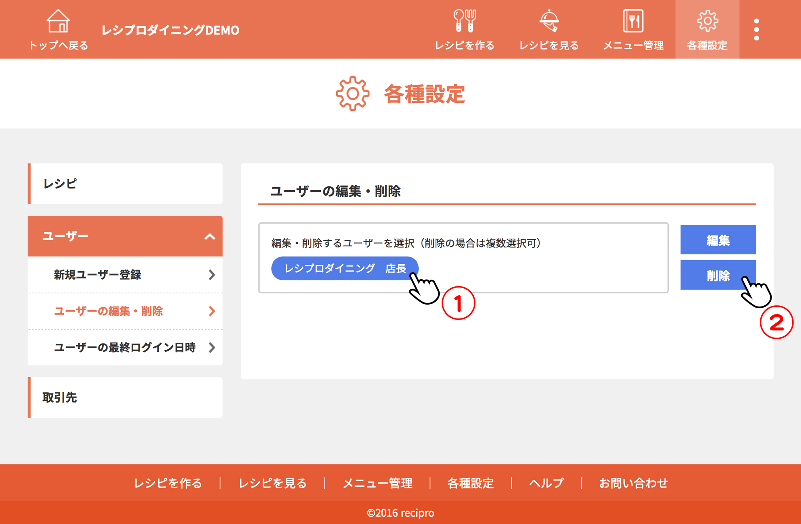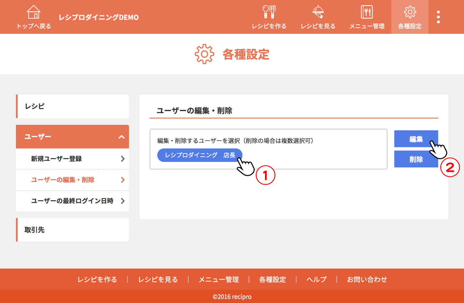 [ユーザーの編集・削除]をクリック(タップ)