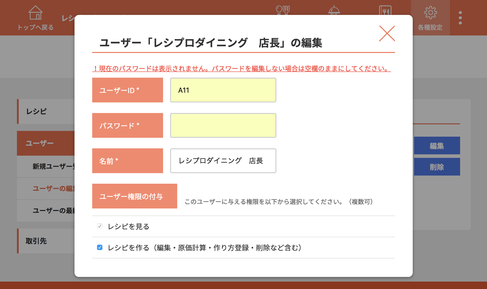 ユーザーの編集