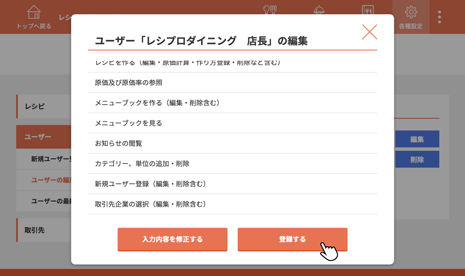 以上で、「ユーザーの編集」は完了です。