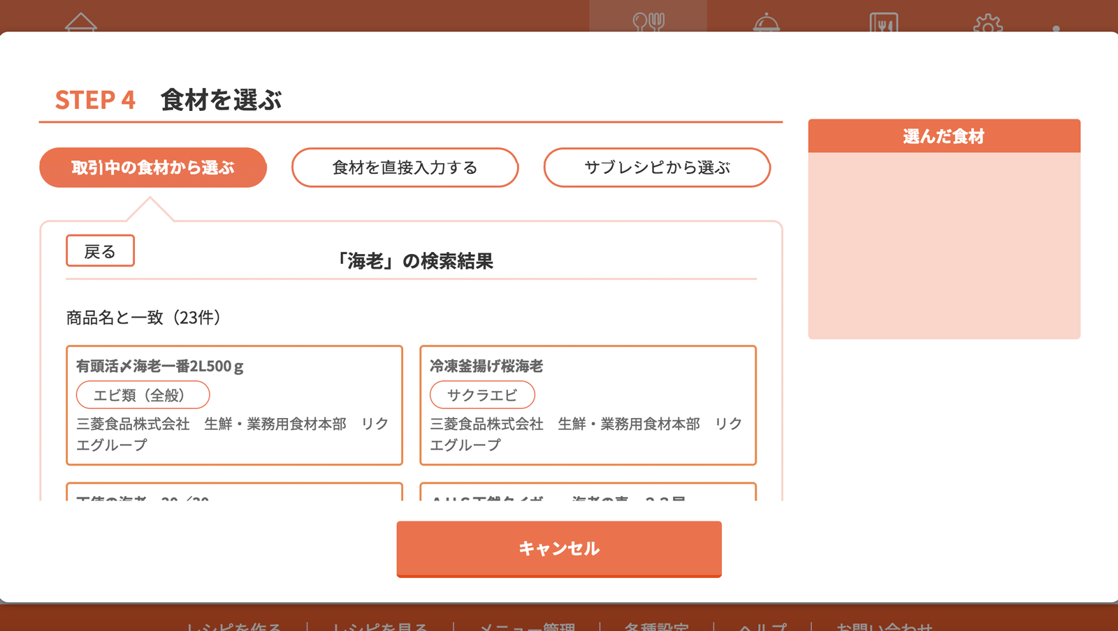 検索結果の中から使用したい食材を探す