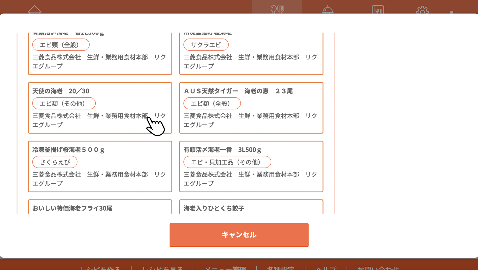 ※画面は「海老」で検索した場合の一例です。