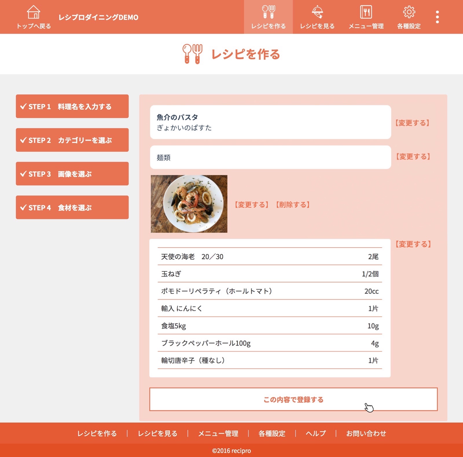 以上で、「作り方を登録する」は完了です。