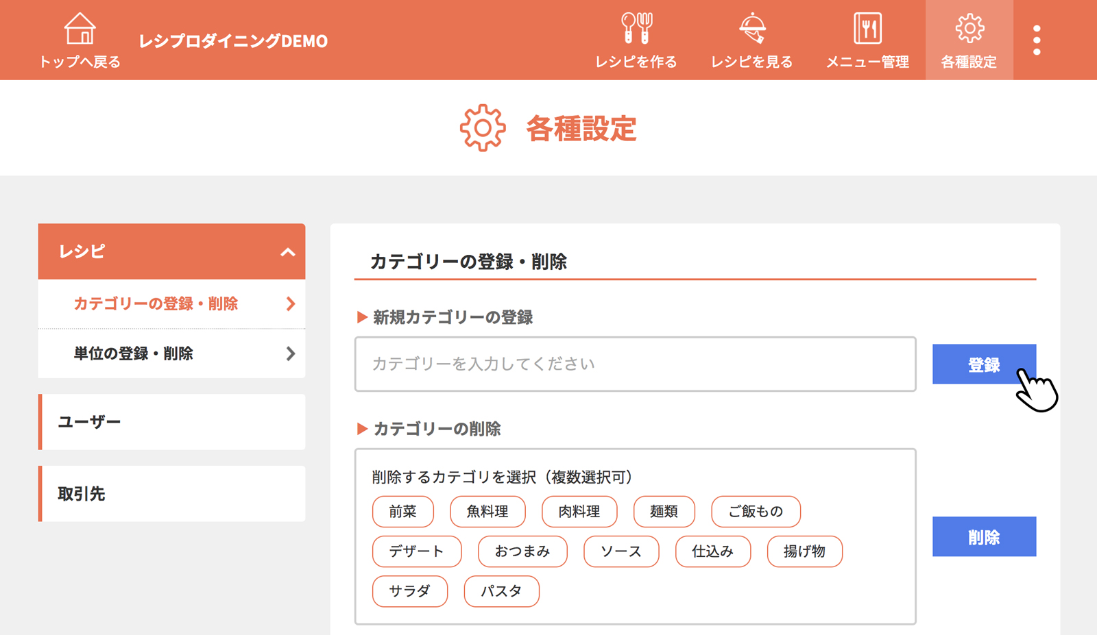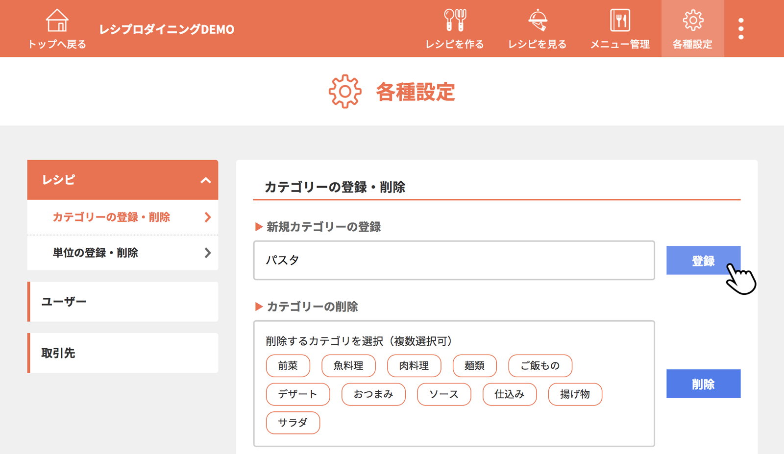 カテゴリーを入力し、[登録]をクリック(タップ)