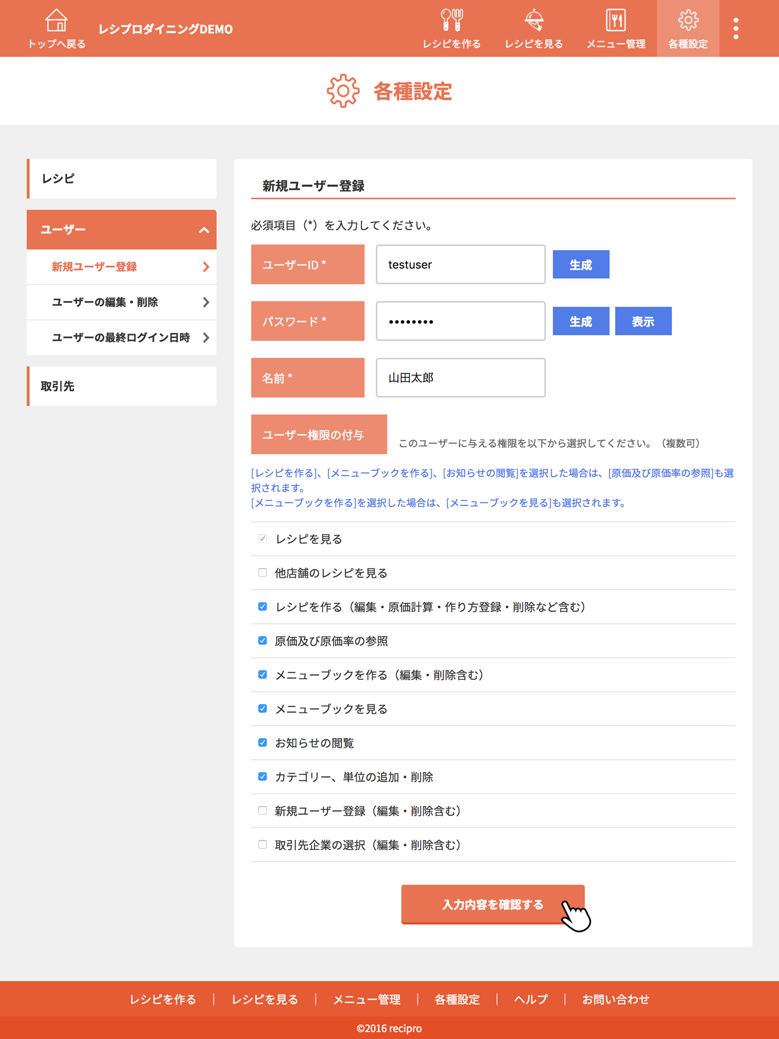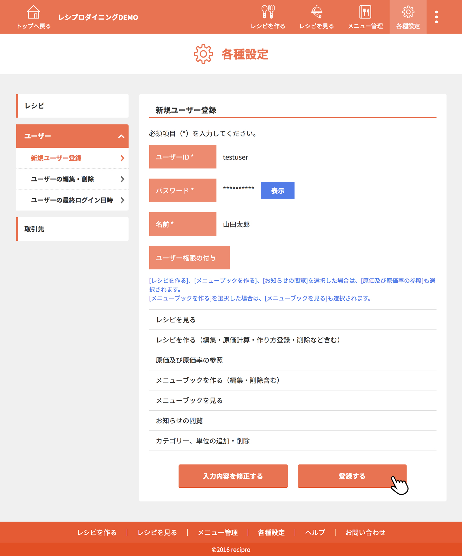 ユーザーの登録