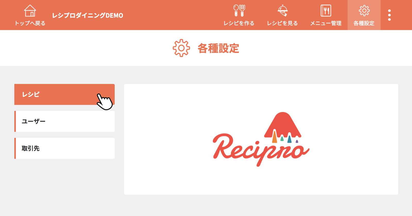 [レシピ]をクリック(タップ)