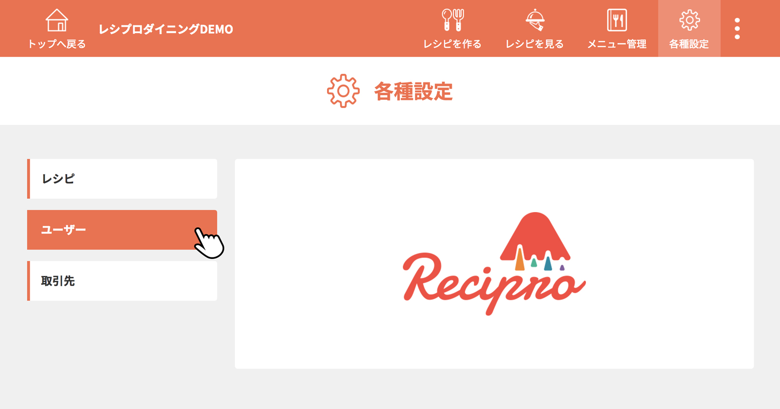 [ユーザー]をクリック(タップ)