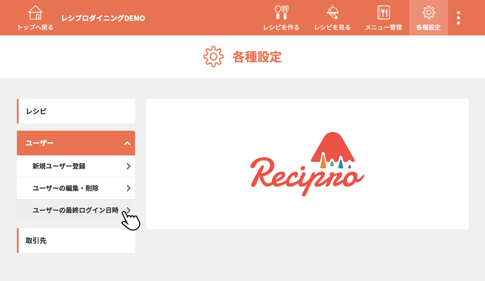 [ユーザーの最終ログイン日時]をクリック(タップ)